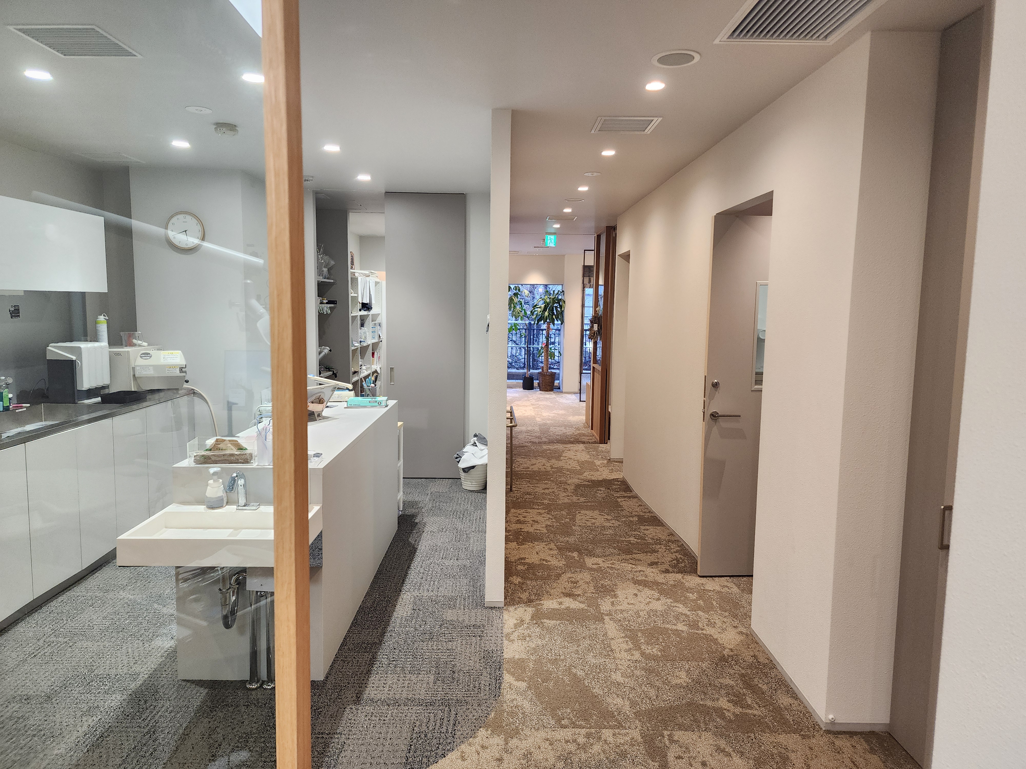 まず、院内のレイアウトは「状況の分かりやすさ」を建物の設計段階から組み込みました。具体的には、私の診療室からは待合室や玄関が見渡せるようにし、さらに院内の中央に滅菌室を配置しています。