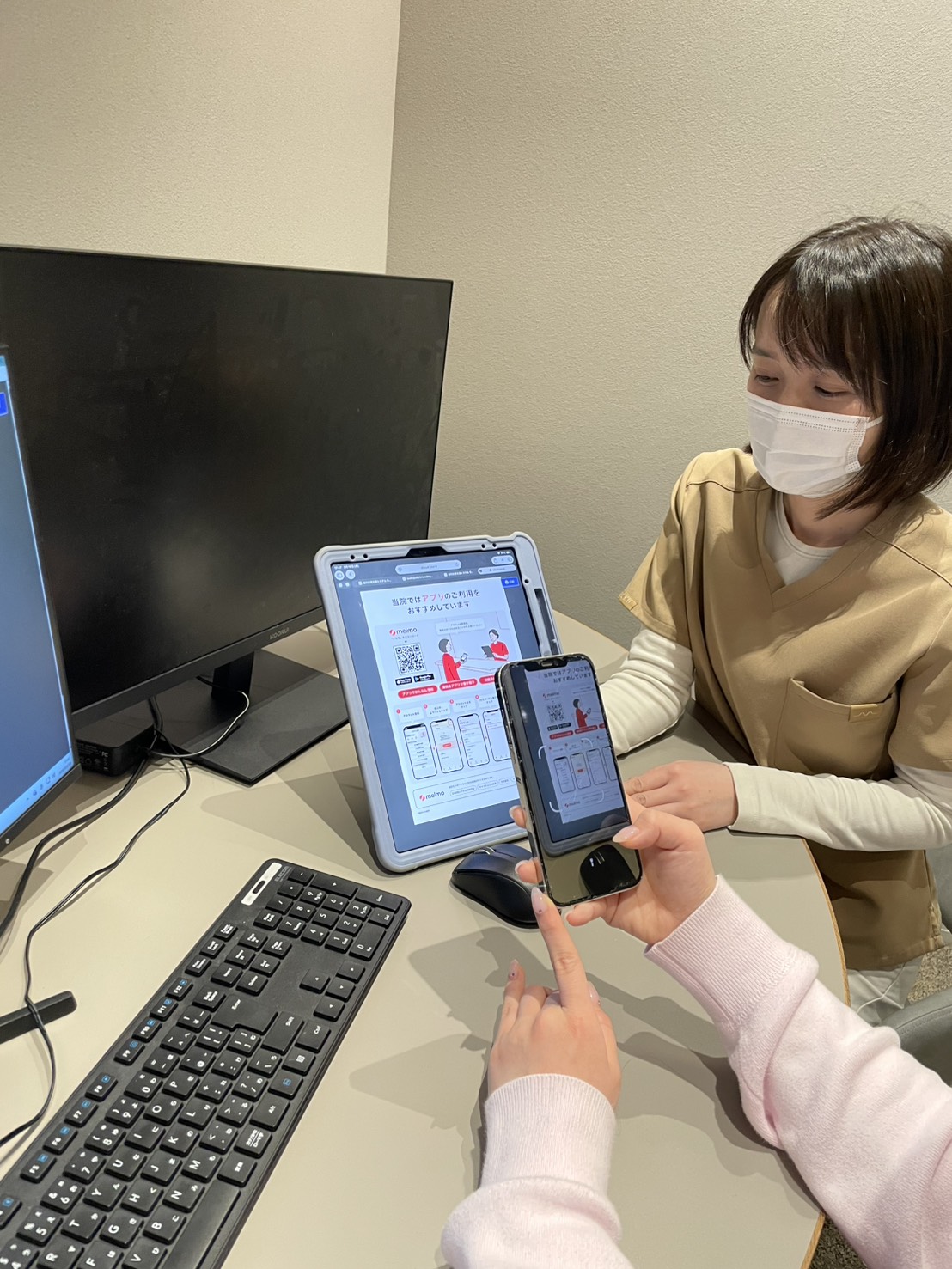そのため当院では、アプリの登録案内をあえて受付では行わず、空間を変えて「カウンセリングルーム」で行うようにしています。 レントゲン準備などのちょっとした隙間時間に、落ち着いた環境でスタッフが隣に座ってサポートする。受付という「早く済ませたい場所」から、カウンセリングルームという「対話のための場所」へ場面を切り替えることで、患者様の心理的なハードルが下がり、自然とアプリ登録を受け入れていただけるようになりました。