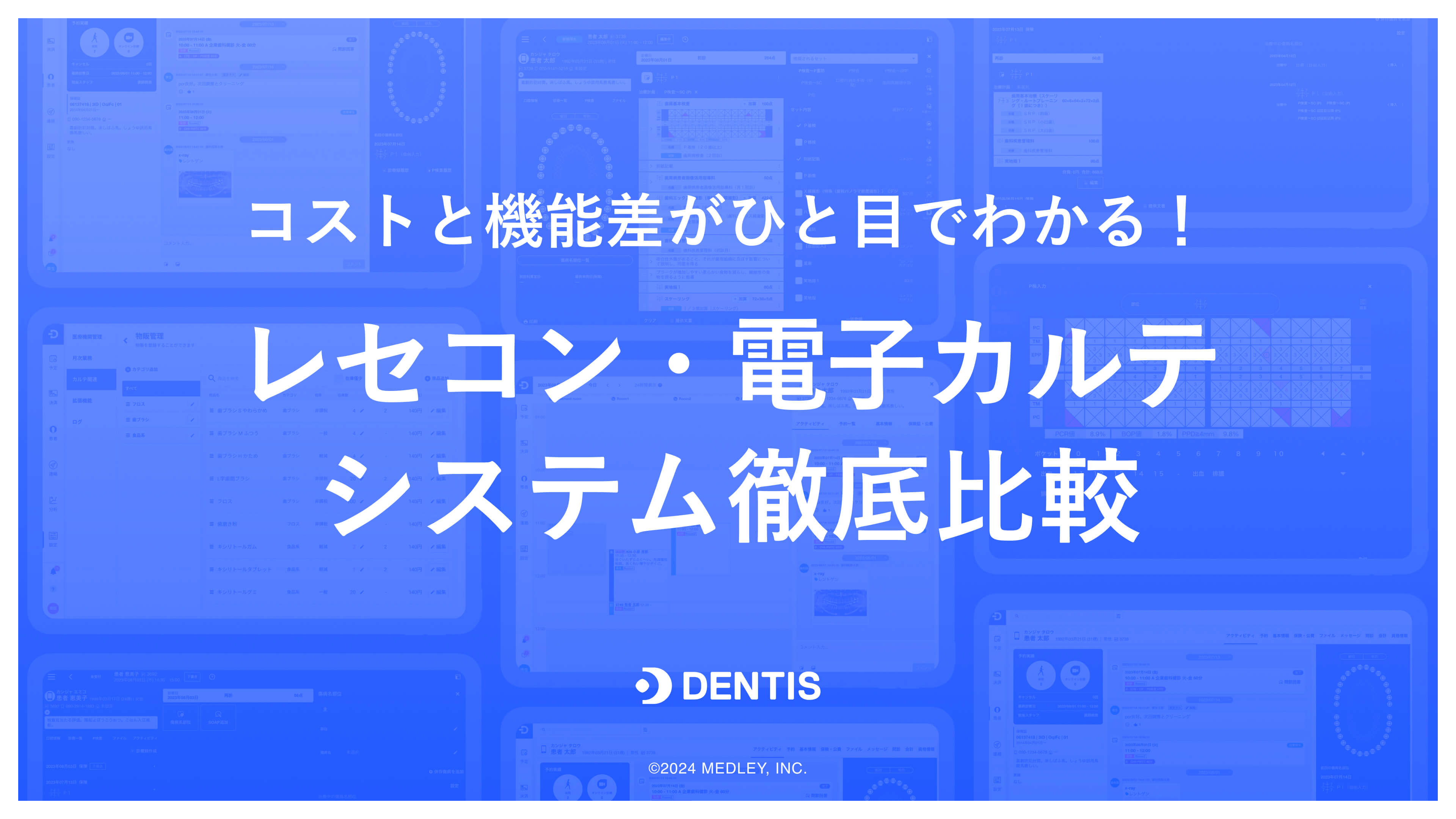 各社レセコンの違いをわかりやすく解説した資料を無料で進呈いたします。この資料では以下の内容について解説しています。・オンプレ型とクラウド型レセコンの機能面の比較・各社レセコンの機能、価格の比較・Dentisの紹介